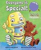 In Everyone Is Special, Matty receives an elaborate new toy robot. His other toys appreciate Mr. Bot’s fancy features, but Teddy feels insufficient, as if he is being replaced. Teddy emulates Mr. Bot by adorning himself in shiny tin-foil and googly glasses. Upon discovering Teddy in this state, Matty pulls off the robot garb and envelopes him in a giant hug. While snuggling together later that night, Teddy realizes his soft, cuddly features are special, and he is happy to be himself. Through innovative sound technology, kids can push a button in the corner of the book to bring Mr. Bot to life with robot sounds and accompanying vibrations. These interactive elements help young children develop cognitively while enhancing the entertainment value of the book.