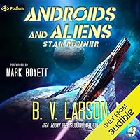 It's time for the humans to strike back! Vile, ant-like aliens have already consumed the colonies of the Faustian Chain. Known as the Skaintz, these creatures destroy all living things and carry them back to their nests to be devoured. Now, they've begun to invade the stars of the Conclave.Captain Bill Gorman, a smuggler from the Fringe, is called upon by the Conclave rulers to scout the enemy. Fleets and armies are launched in a desperate attempt to annihilate the Skaintz before they consume Humanity.Find out what happens next in ANDROIDS and ALIENS, the thrilling third episode of the STAR RUNNER series. Soon to be out on Audible, ANDROIDS and ALIENS is a new SF adventure by B. V. Larson, the King of Military Science Fiction.