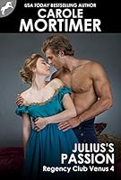Julius’s Passion (Regency Club Venus 4) is the 4th and last book in Amazon #1 & USA Today Bestselling Author, Carole Mortimer’s, hot historical romance series, Regency Club Venus.Lord Julius Soames, the Earl of Andover, welcomes the diversion of assisting James Metford in reclaiming his title as the Earl of Ipswich.Julius’s own life has become somewhat stultifying in recent months, not helped by his three closest friends having found and married, or be about to marry, the women they love.He believes travelling to Suffolk with James to be the perfect diversion from his own ennui.Julius might be known in Society for his cynicism and dryness of humour, but neither of those things has prepared him for the depth of his physical reaction to the ethereal beauty of James’s sister, the young and beautiful Lady Bethany Metford.For ten years Bethany has believed her brother to be dead and buried, so it is the greatest shock of her young life when he suddenly reappears back at the Suffolk estate of their uncle, where she has been incarcerated for all of those same years.Not only has James returned from the dead but he has brought the arrogant Lord Julius Soames, the Earl of Andover, with him.Will Bethany be able to forgive James for abandoning her?Can she resist the allure of the handsome, but infuriating, Julius Soames?And what is the secret their uncle is so determined to keep hidden from all of them?Coming Soon – HIDDEN DESIRE (Regency Men in love 2)Other books by Carole Mortimer:Dance with the Devil - a contemporary hot and steamy romance seriesMATTEO (Dance with the Devil 1)LEON (Dance with the Devil 2)KILLIAN (Dance with the Devil 3)More books to come in this seriesRegency Club Venus:Bastian’s Surrender (Regency Club Venus 1)Gabriel’s Torment (Regency Club Venus 2)Benedict’s Challenge (Regency Club Venus 3)Julius’s Passion (Regency Club Venus 4)Steele Protectors:LOGAN (Steele Protectors 1)ATTICUS (Steele Protectors 2)BRYCE (Steele Protectors 3)ROURKE (Steele Protectors 4)HAYDN (Steele Protectors 5) Author’s 250th BookLUCAN (Steele Protectors)Regency Men in Love – MM series written as C A MORTIMERHidden Lover (Regency Men in Love 1)Hidden Desire (Regency Men in Love 2)More books to come in this seriesDragon Hearts Series – paranormalNATHANIEL (Dragon Hearts 1)DERYK (Dragon Hearts 2)BRYN (Dragon Hearts 3)DYLAN (Dragon Hearts 4)GRIGOR (Dragon Hearts 5)GARRETT (Dragon Hearts 6)AERAN & RHYS (Dragon Hearts 7)DRAGON REUNION (Dragon Hearts 8)Series now complete.Also Available:Regency Lovers Series – Bks 1-6ALPHA Series – Bks 1-8Regency Unlaced – Bks 1-9Regency Sinners – Bks 1-8Knight Security – Bks 0.5-6Carole Mortimer has written over 255 books in Regency, Contemporary, Romantic Suspense, Regency MM, and Paranormal romance. In 2015 she became the Recipient of the prestigious Romance Writers of America’s Lifetime Achievement Award. She was awarded a Romantic Times Career Achievement Award in 2017. She is an Entertainment Weekly Top 10 Romance Author—ever. Carole is a 2014 Romantic Times Pioneer of Romance. She was also recognized by Queen Elizabeth II in 2012, for her “outstanding service to literature”.
