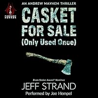 In Graverobbers Wanted (No Experience Necessary), he took a job digging up a shallow grave. It turned out badly. In Single White Psychopath Seeks Same, he took a job as a bodyguard at a séance. It turned out worse. But now, meet the new, improved Andrew Mayhem. He has a real job. He's a better father and husband. And he's vowed to quit accepting money from strange women in coffee shops to perform tasks that go terribly, terribly wrong. This time he's just taking a relaxing camping trip with his family and best friend. No shortcuts. The gas tank is full. The sinister warning of the crazy old man is taken seriously. Unfortunately, when you're Andrew Mayhem, you just can't help being attacked by a group of savage killers bent on inflicting ghastly torture and bringing horrific death. Relentlessly pursued through a booby-trapped forest, it's one crisis after another as Andrew fights to protect his family, loses a body part or two, and faces the single darkest moment of his entire life. Action-packed, twisted, and completely outrageous, Casket For Sale (Only Used Once) is the funniest and scariest Andrew Mayhem adventure yet!