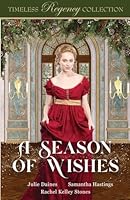 This Christmas, the best wishes aren't found on a list.The Trouble with Wishes by Julie DainesCatherine Haywood is desperate to claim the affection of her long-time friend Frederick Milton, but Frederick only seems interested in courting the new young lady in town. Catherine makes a series of wishes, thinking that is the safer route rather than openly putting her heart on the line. But as each wish is fulfilled, she realizes getting what she wished for is not the same as getting what she wants.We Wish You a Miserable Christmas by Samantha HastingsTwo secret pen fellows meet only to learn that they already know one another in this Christmas comedy of errors! Miserable Margaret resents Mr. Frank Warner and truthfully he is a little afraid of her. They are thrown together in a Christmas house party in London and spend the season skating, decorating, going to the theaters, and even dancing. Margaret discovers that she isn't miserable after all. And Frank, with her help, finds the courage to believe in himself and work for his own happily-ever-after.Pranks and Wishes by Rachel Kelley StonesElizabeth Quincy will do anything it takes to stop her childhood friend, Thomas Westin, from proposing marriage to her younger sister this Christmas. Thomas Westin has a plan. He's determined to convince Lizzy to be his bride. Only, she keeps avoiding any conversation related to love. In this friends-to-lovers novella, Lizzy and Thomas must learn to trust themselves and each other to see if their feelings will be reciprocated.Timeless Regency Collections: WEDDING WAGERSAN EVENING AT ALMACK'SA WEEK IN BRIGHTONTO LOVE A GOVERNESSWIDOWS OF SOMERSETA CHRISTMAS PROMISEA SEASIDE SUMMERTHE INNS OF DEVONSHIRETO KISS A WALLFLOWERBEYOND PEMBERLEYA SEASON OF WISHES