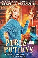 Purls and Potions is Book 5 in the best-selling Vampire Knitting Club series. There's no sex, gore or cliff-hanger endings, just lots of humor and quirky characters -- including Nyx, Lucy's black cat and familiar. Each book can be enjoyed on its own.