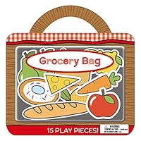"Grocery Bag" is an interactive board book set to inspire imagination in children who like grocery shopping and food There are ten puzzle pieces, packaged in a clam shell, to play with and match to the spaces on the book pages, as well as a fun, die-cut carry handle.