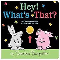 From the brilliant mind of bestselling and beloved Sandra Boynton, comes a wild touch-and-feel book with a guessing game twist! Hey! What’s That? invites readers to guess what comes next by touching a mysterious tactile element through a hole on each page. Once the page is turned, readers can keep their wiggly finger in place to join in the animal fun! Become a swinging elephant trunk, a swishy lion tail, or a waggly rabbit ear! The adventure is all in your hands! Hey! What’s That? A Bumpy Yellow Elephant! Say hi to her with your trunk. (wiggle finger)
