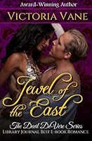 JEWEL OF THE EAST by Victoria Vane The Devil DeVere Series #5 Maimed by Misfortune… Healed by Love… His wounds run deep…Having once lived his life only for larks, laughter, and ladies of easy virtue, Captain Simon Singleton has returned from war a shambles of a man. Although free from six years of captivity, he's still fettered by fears that confine him to a life of seclusion. Her scars are well-hidden…Once the crowning jewel of the most lavish brothel in London, the exotic Salime finds her reputation and livelihood destroyed by a bitter rival. With a closely guarded secret stripped away, she fears no man will ever desire her again. Seeking aid from one who once saved her life, she accepts a proposition to become a companion to his war-scarred friend. But love is the eternal cure…When circumstance brings these two damaged souls together, fate ignites a love story reminiscent of the Arabian Nights. In the fifth installment of the award-winning Devil DeVere series, DeVere once more plays the unlikely cupid by bringing together Simon (The Trouble with Sin) and Salime (The Devil's Match), two injured souls who find ultimate healing in each other's arms.(May be read as a standalone.)